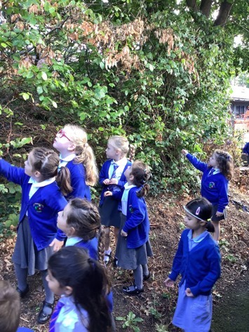 Today we explored our school grounds looking for signs of Autumn. We noticed the air was much cooler and some things in nature were changing. We hunted for different colour leaves and observed the different trees that were just beginning to change colours. We talked about the parts of a tree - naming the trunk, branches, twigs and bark. We also talked about things we found such as helicopter seeds, conkers, berries and brambles. We will spend the next month being ‘Season Detectives’ and trying to spot changes that are happening all around us!