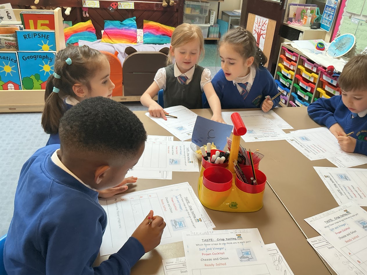 We learnt about our 5 senses: smell, taste, touch, sight and hear. We completed some investigations to see if we could use our senses, such as a taste test for different flavoured crisps, a touch test for items hidden in a bag, a hearing test where we tried to listen to things close and far away, and a smell test where we tried to guess different items just by smelling them!