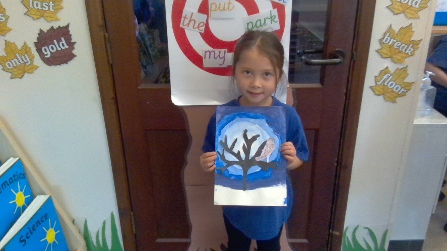 This week we created a beautiful Winter Scene. We started by exploring colour and how to make as many tones of one colour as possible using white. We then painted a winter sunset starting with white, progressing to dark purple. To improve our sketching and cutting skills we drew a winter tree using a template and very carefully cut it out. Next, we stuck the tree on to our winter sunset to create a silhouette and discussed the effect of light and dark. Finally, we sketched a fox, cut it out and stuck it on the foreground of our winter scene.